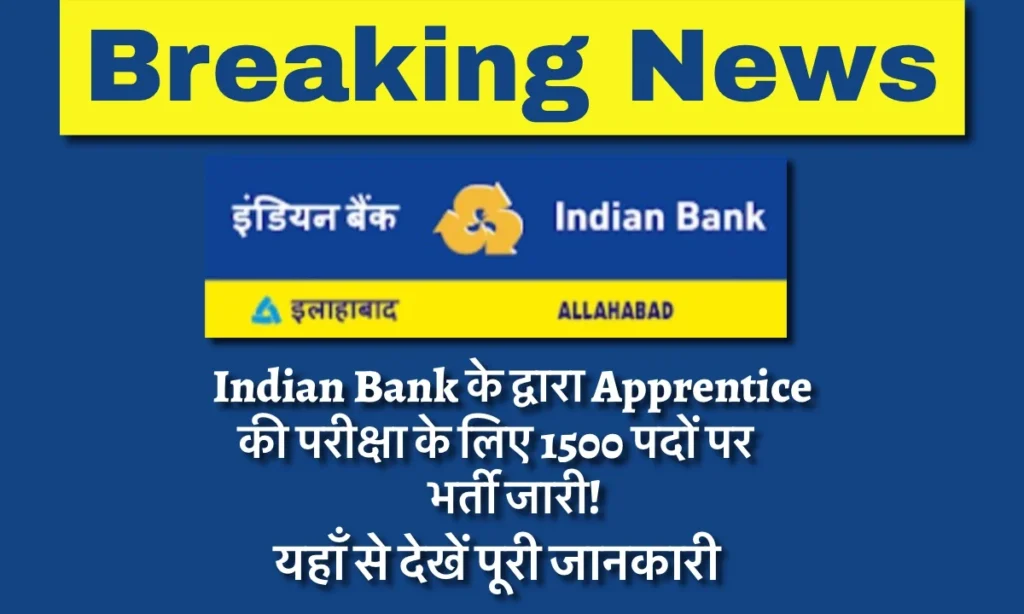 Indian Bank Apprentice Recruitment 2025: बैंक में नौकरी पाने की तलाश कर रहे युवाओं के लिए बहुत बड़ी खुशखबरी है। इंडियन बैंक ने बंपर पदों पर अप्रेंटिस भर्ती निकाली है। आवेदन प्रक्रिया 18 जुलाई 2025 से शुरू हो गई है। आवेदन फॉर्म भरने की अंतिम तिथि 7 अगस्त 2025 निर्धारित की गई है। आवेदन करने के इच्छुक उम्मीदवारों को आधिकारिक वेबसाइट https://www.indianbank.in/ या फिर nats.education.gov.in पर जाना होगा। इस भर्ती प्रक्रिया के जरिए कुल 15,00 पदों पर उम्मीदवारों की नियुक्ति की जाएगी।